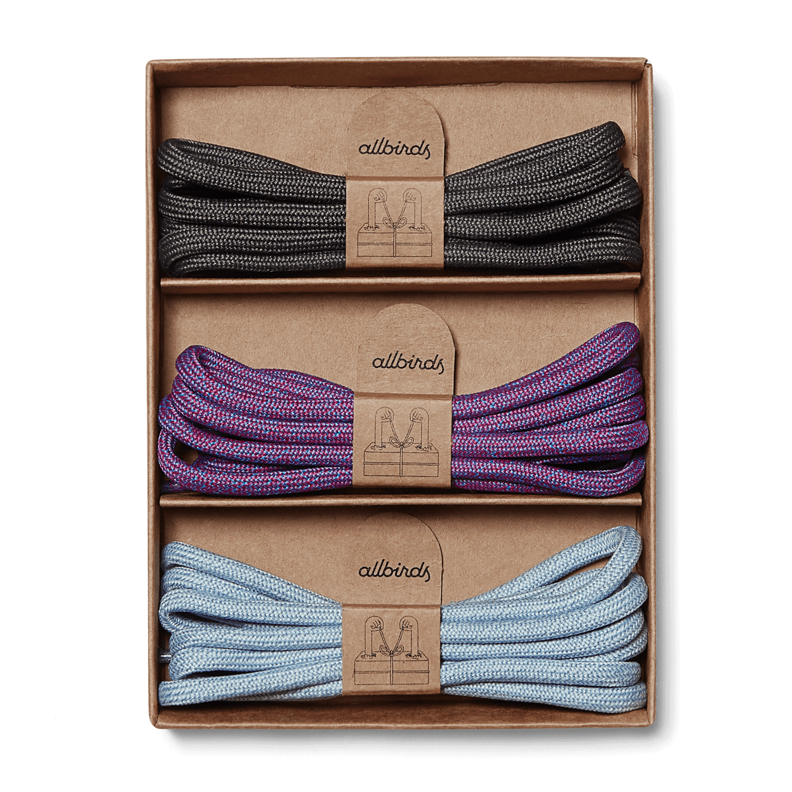 Our laces are made with 100% post-consumer, recycled plastic bottles. Each kit comes with three sets of laces.